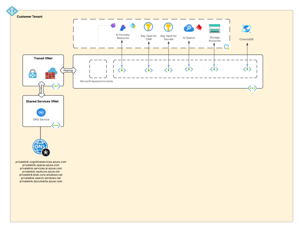 As you can see above, there is a lot of talk between the PaaS. Let’s tackle that before we get into human access. PaaS communication almost exclusively happens through the Microsoft public backbone (some services have special features as I’ll talk about in a minute). This means control of that inbound traffic is going to be done through the PaaS service firewall and trusted Azure service exception for Azure OpenAI / AI Foundry, AI Search, and Azure Storage (optionally using resource exception for storage). If you’re using the AI Search Standard or above SKU you get access to the Shared Private Access feature which allows you to inject a managed Private Endpoint (this is a Private Endpoint that gets provisioned into a Microsoft-managed virtual network allowing connectivity to a resource in your subscription) into a Microsoft-managed virtual network where AI Search compute runs giving it the ability to reach the resource using a Private Endpoint. While cool, this is more cost and complexity.