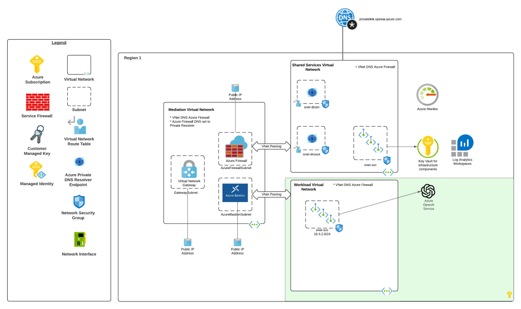 Way back in 2023 the hype behind generative AI really started go insane. Microsoft managed to negotiate rights to host OpenAI’s models in Azure and introduced the Azure OpenAI Service. The demand across customers was insane where every business unit (BU) wanted it yesterday. Microsoft initially offered the service within the Cognitive Services framework under the Cognitive Services resource provider. This mean it inherited many of the controls native to Cognitive Services which included Private Endpoints, a limited set of outbound controls, support for API key and Entra ID authentication, and support for Azure RBAC for authorization. Getting the deployed was pretty straightforward with the hold-ups to deployment being more concerns about LLM security in general. Deployment typically looked like the architecture below.